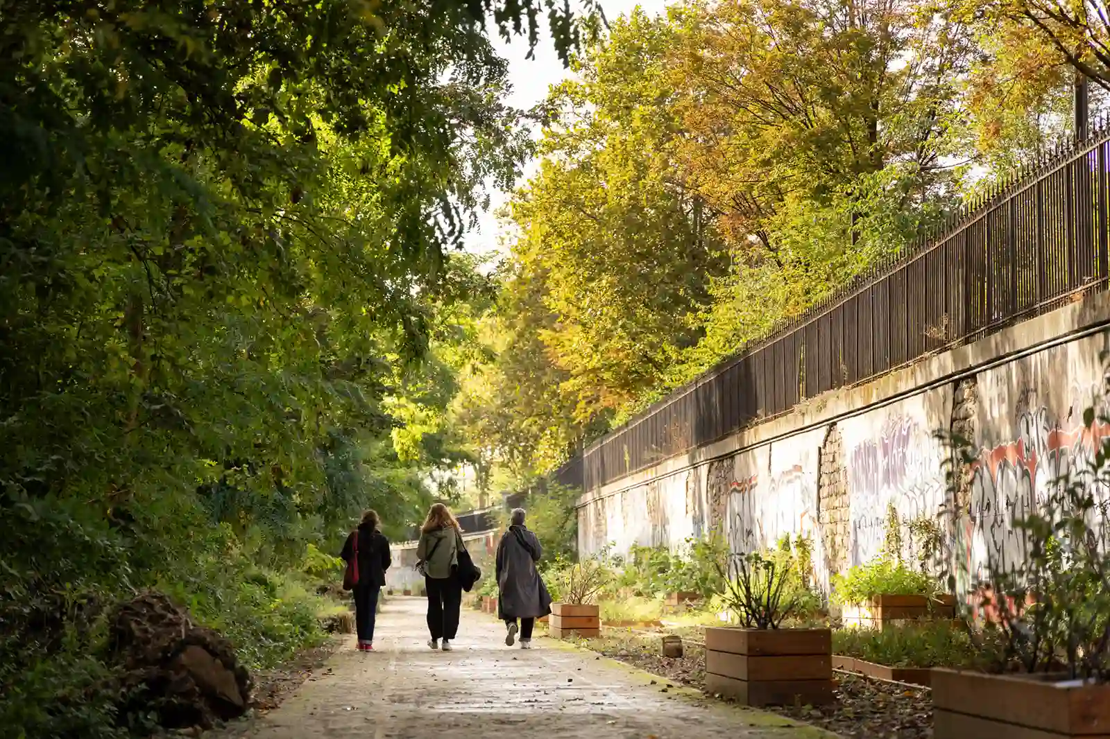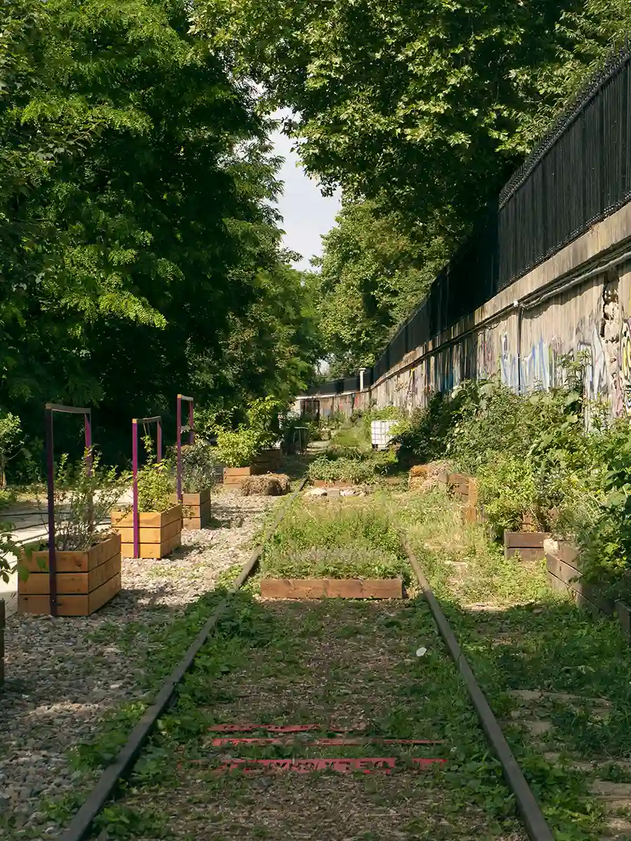 Les associations Green Resistance, Vergers Urbains et la Fédération Léo Lagrange, en partenariat avec l’agence WAO Architecture, ont uni leurs compétences pour transformer cette portion de la Petite Ceinture en un espace dédié à l’agriculture urbaine et à l’expression artistique.